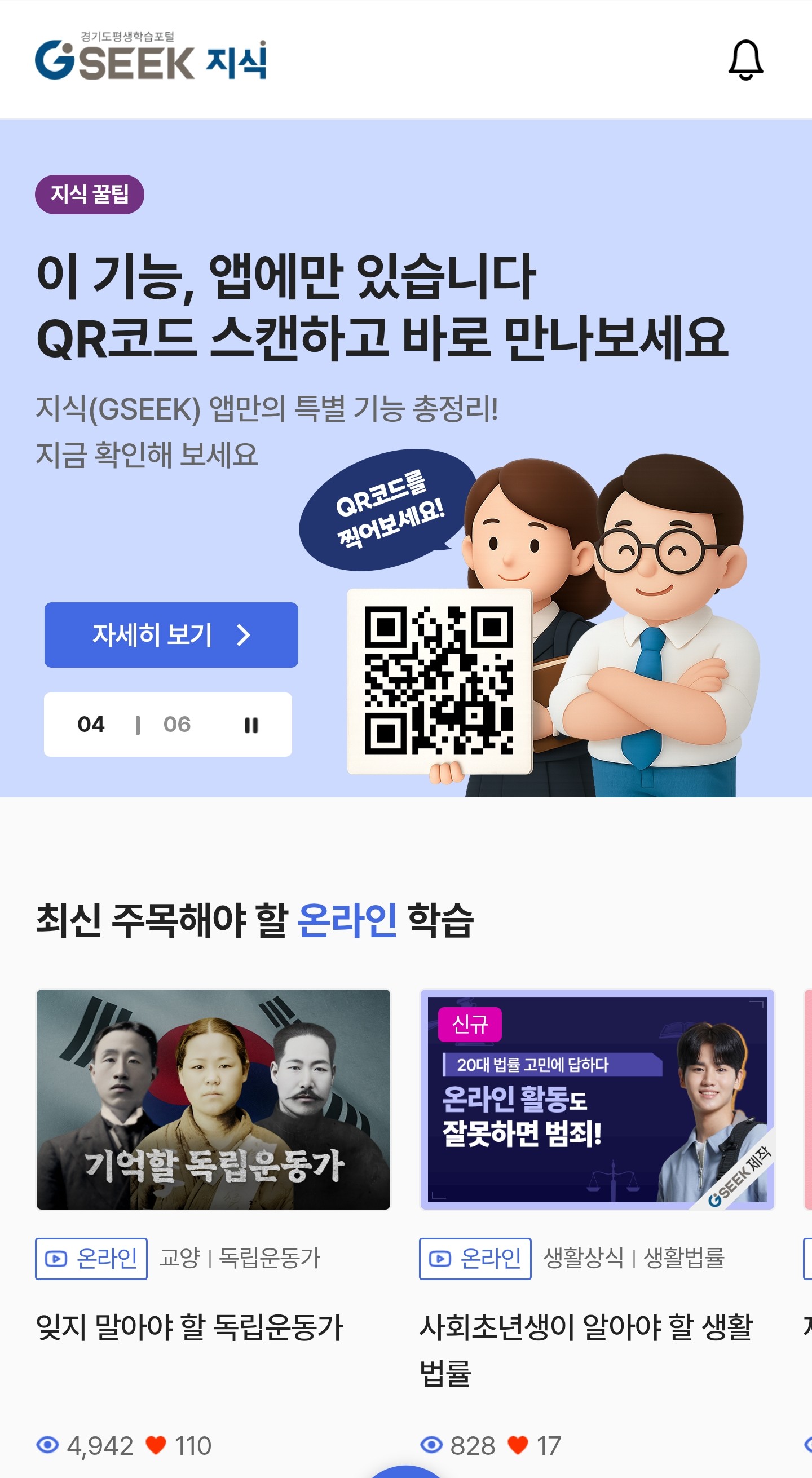 경기도 평생학습포털 지식(GSEEK): 현재 '2026년 공인중개사 기초입문 및 기본이론' 강좌가 업데이트되고 있습니다. (에듀스파, 랜드하나 제공)